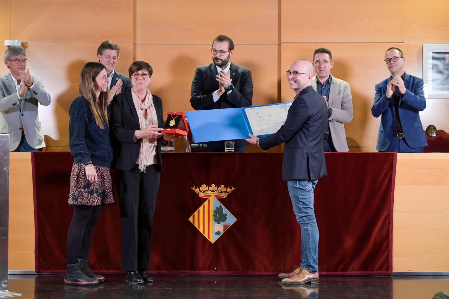 Núria Nogueras, pareja de Cuyàs, recibe la Medalla. Foto: Aj Mataró